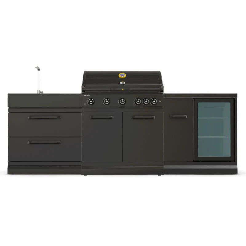 Elevate your outdoor cooking experience with the GRLLR Connect kitchen setup. This all-in-one solution combines professional-grade performance with convenience, featuring the powerful GRLLR Prime G5S 5-burner gas BBQ with back burner, an integrated fridge, and a stainless steel sink—everything you need to cook, prep, and entertain in your garden.