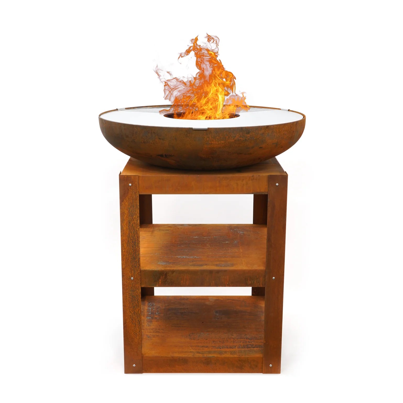 • Integrated wood storage for easy access and convenience