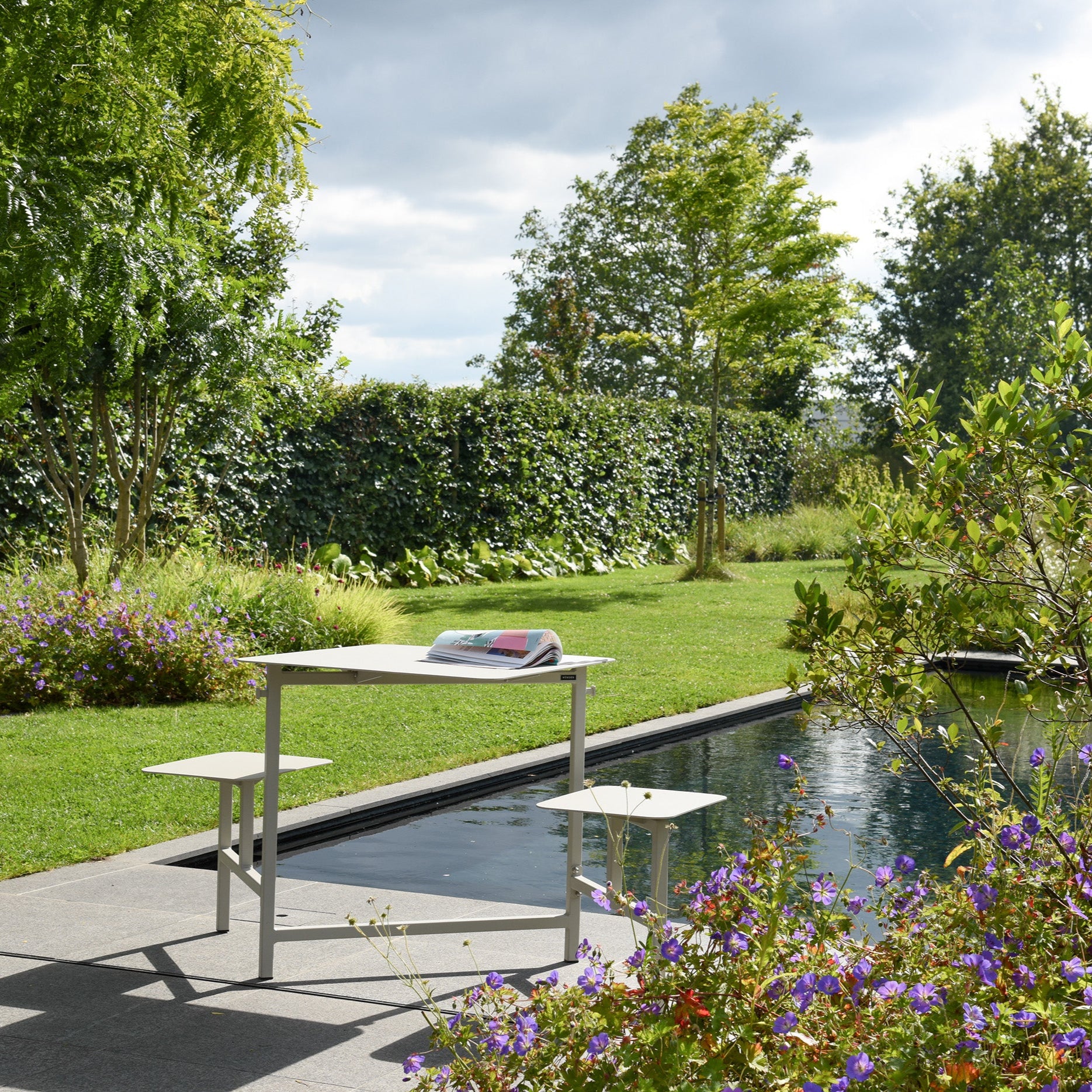 The Duo boasts a premium-quality aluminium tabletop, elegantly supported by a sturdy four-legged steel base. Its robust yet flexible design ensures stability on any surface, making it a reliable and versatile addition to your space.