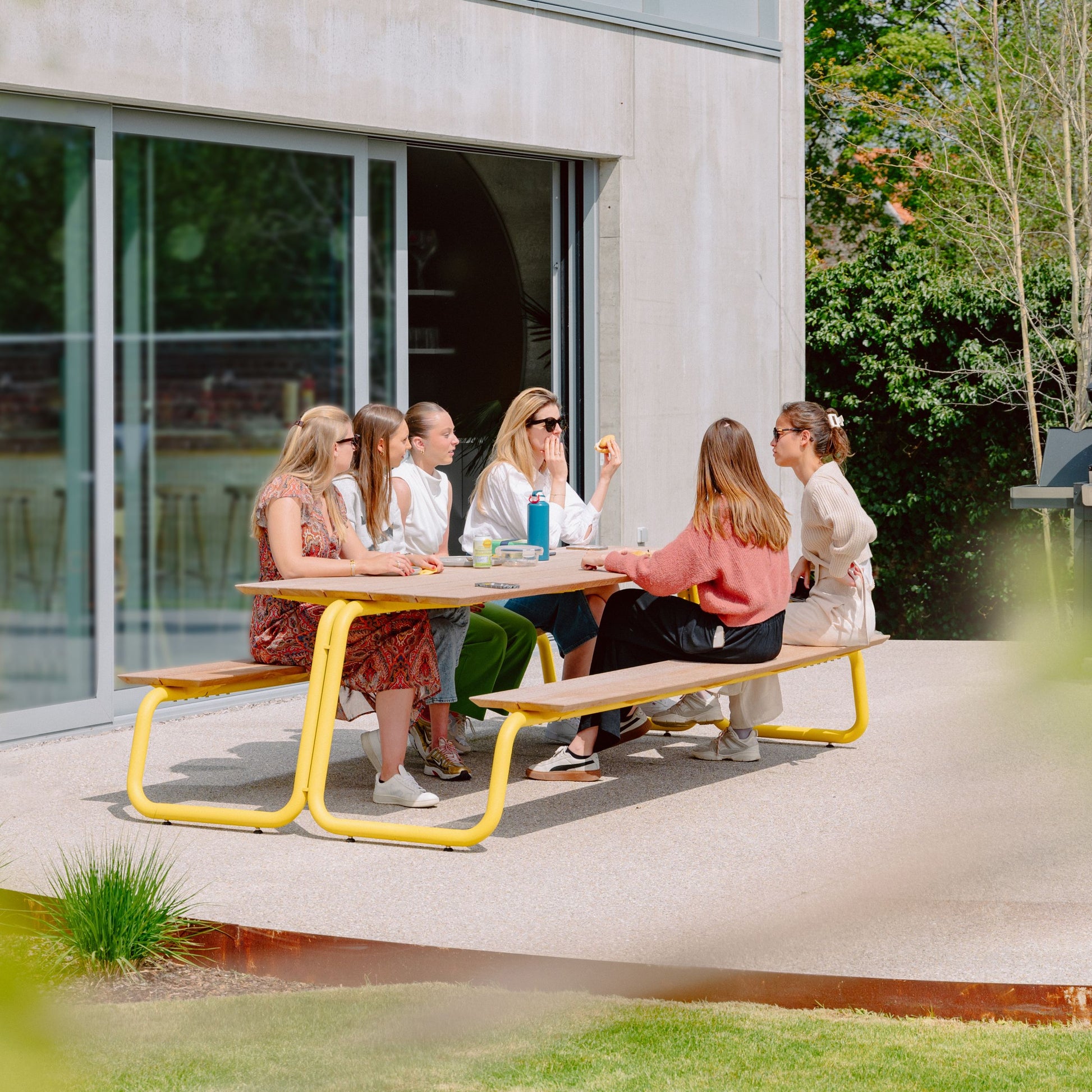 Crafted from sustainable Class A hardwood and powder-coated steel, The Table is built to last, balancing durability with timeless design.